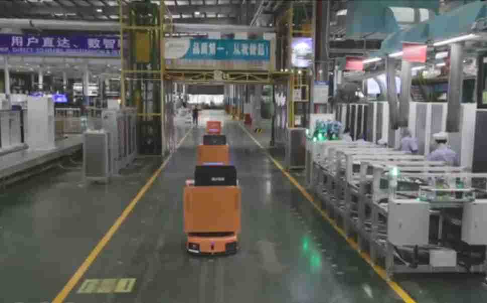 为车载冰箱物流配送打造的智能解决方案,,,,包含产中物流通过潜伏举升AMR搬运至线边,,产后成品物流智能仓储,,,流程包含产中物流智能齐套入库,,,线边安灯叫料AMR智能配送至线边,,,成品入库、、、、出库,,,通过无人堆高车机器人,,,,智能仓储管理替代人工作业管理,,,,实现更高存储、、、更高效率、、、、更具柔性化的解决方案。。